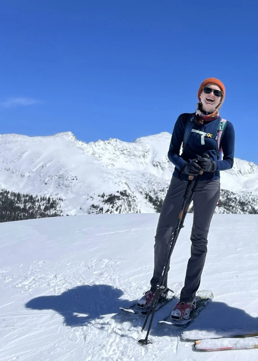In my free time, I enjoy connecting with my friends and family, backpacking, rollerblading, writing letters (snail mail, of course), making collages, climbing trees, traveling, playing board games, and volunteering. I aspire to read fiction, but I usually end up diving into books about trauma therapy, neurodivergence, or meditation instead. My favorite tree is the ponderosa pine, and the aspens also deserve an honorable mention. It likely goes without saying that I love foxes! I am enamored by their cleverness, resourcefulness, and whimsical movements. The natural landscape I feel most at home in is a high alpine lake surrounded by a meadow full of colorful wildflowers amidst big, beautiful snow-capped mountains.